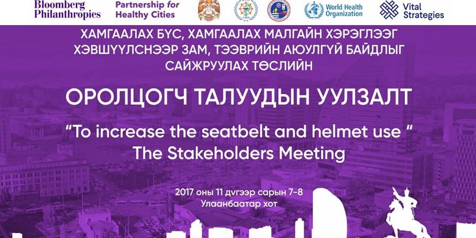 “Блумберг филантропи” болон хамтрагч байгууллагуудтай нэгдэн Дэлхийн Эрүүл мэндийн байгууллагаас хүн амыг халдварт бус өвчин, осол гэмтлээс сэргийлэхэд үр дүнтэй 10 арга хэмжээний нэг хэмээн хүлээн зөвшөөрсөн “Хамгаалах бүс, хамгаалах малгайн хэрэглээг хэвшүүлснээр зам, тээврийн аюулгүй байдлыг сайжруулах” төслийн оролцогч талуудын уулзалтыг энэ сарын 7-8-ны өдөр зохион байгуулна гэж нийслэлийн Эрүүл мэндийн газраас мэдээллээ.