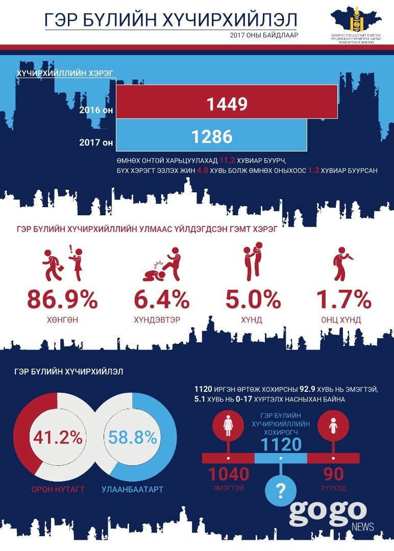 Гэр бүлийн хүчирхийллийн гэмт хэрэг өмнөх оныхоос 11.2 хувиар буурчээ