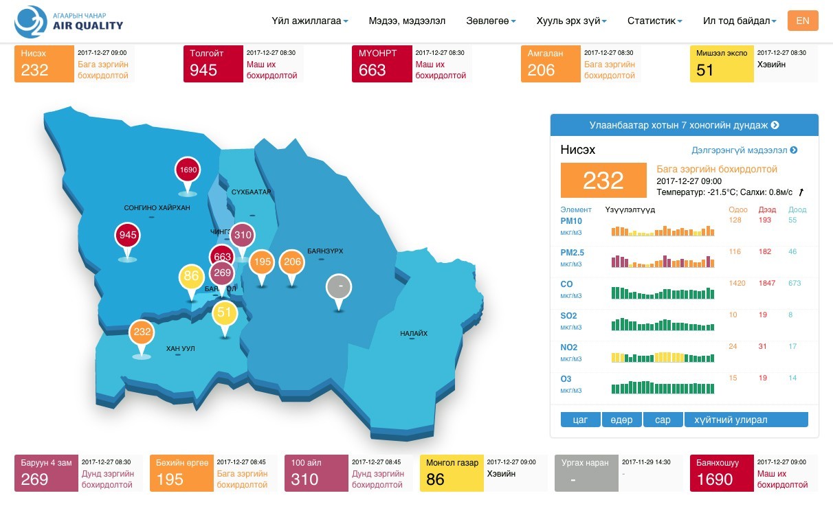 Агаарын чанар: Ганцхан цэгийн агаар цэвэр байна