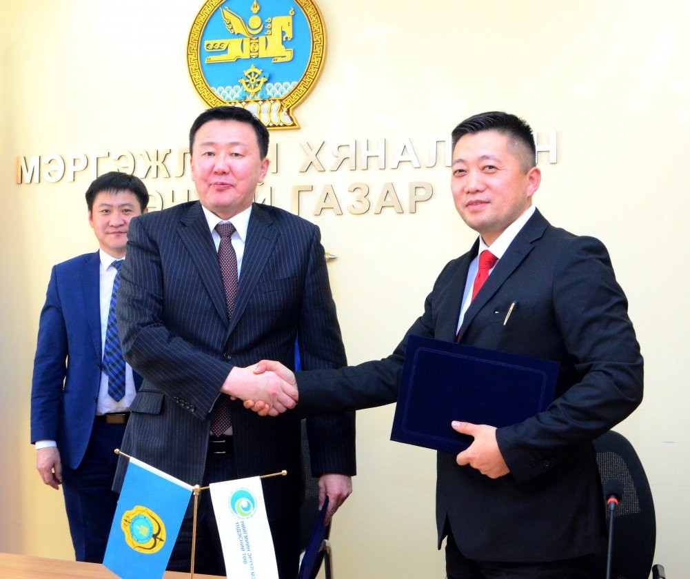 НЭМҮТ-ийн захирал Б.Цогтбаатар, МХЕГ-ын дэд дарга Г.Сугарбат нар хамтран ажиллах САНАМЖ БИЧИГТ гарын үсэг зурлаа