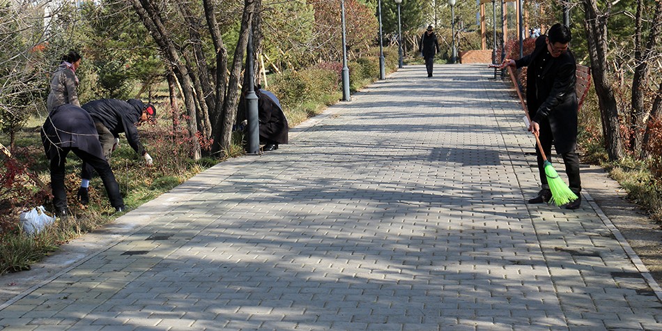 Нийслэлийн төр захиргааны байгууллагын албан хаагчид нийтийн эзэмшлийн талбайг цэвэрлэж байна